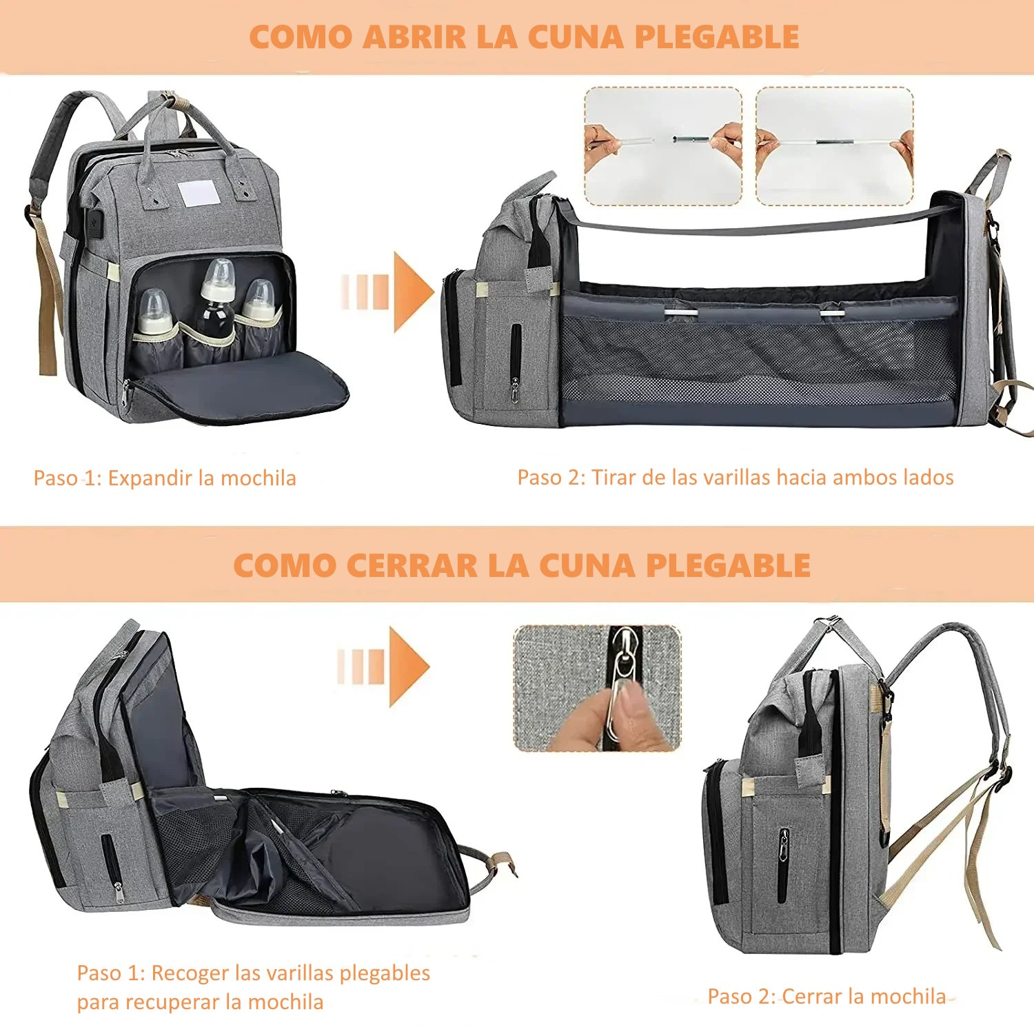 En resumen, es una mochila versátil, moderna y práctica que facilita la vida de los padres, asegurando que siempre tengan a mano lo necesario para el cuidado del bebé y sus propias necesidades.